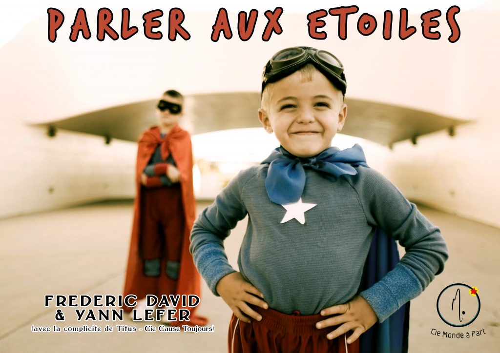 « C’est l’histoire d’Ancelin, un petit garçon pas comme les autres. Après avoir perdu son père, Ancelin se sent différent… Il a développé une forme d’handicap: le bégaiement. Pour survivre et résister aux moqueries et autres rejets, il s’invente un imaginaire fort. Il parle aux étoiles! Lui répondront-elles? Lui offriront-elles la capacité et la force de changer? De se changer lui? Ou de changer le monde dans lequel il vit? D’épreuves en épreuves, les aventures d’Ancelin, héros fragile du quotidien enfantin, nous amènent des fêlures jusqu’aux rires et plaisirs. Une histoire parsemée de courage, de paroles et de bonheur! Un spectacle qui fait réfléchir… et lever la tête pour regarder le monde autrement. Une véritable invitation à oser affronter. Oser inventer. Oser tout simplement! »